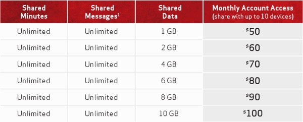 What the chart above doesn’t mention is that the “Share Everything” plan requires $40 for every smartphone, $30 for every basic phone, $20 for a hotspot, and $10 for every tablet (up to 10 devices total). At least tethering and creating a hotspot will not be a separate fee under these plans.