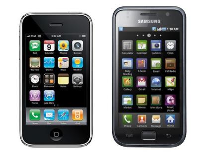 To the left, we have the famous picture (or one very similar to it) Apple uses to show the similarities between its own iPhone and Samsung’s Android powered Galaxy S. Just by first glance, the two phones do seem very similar with a grid of icons and a 4×1 dock on the bottom. Both also have a large button in the bottom center although the Galaxy S has Android’s “Menu” and “Back” capacitive hardware buttons. One of Apple’s claims was that customers would go into a store, buy a Samsung phone or tablet thinking it was an Apple iPhone or iPad and then return said product upon finding out. This definitely falls under some trade dressing laws since Apple is trying to prove that Samsung products look so similar to Apple’s that customers are confused.