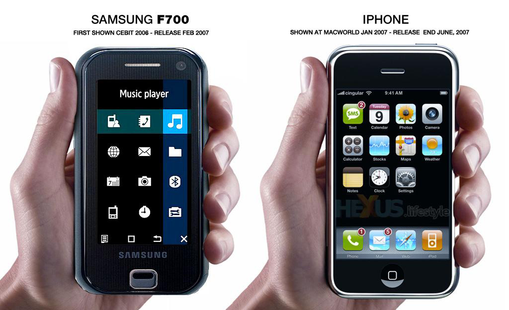 I’m going to go out of limb and say a rectangle shape with a touch screen and round corners isn’t quite revolutionary. The general market, as technology progressed, was definitely moving in this direction with more and more touch screen features. I still remember the LG Prada and, as technology converged, it’s only natural that whatever we used to consume video will end up having the traditional shape (i.e. a rectangle for 16:9 or 4:3 aspect ratio) and designers would attempt to make the device as small and thin as possible. Much of what Apple argued should be in “public domain” in my opinion. Not because they are necessarily obvious, but because technology moves so quickly and the patent system process works too slowly. Who knows what company is working on what at any given time. While I’m talking about patents, some of the more recent patents that were awarded to Apple (outside of the the scope of Apple vs Samsung) involved NFC (Near Field Communication) and its uses in public areas such as an airport. Honestly, something like that should be in public domain and, again, the problem comes with the sheer speed of technology’s progression.