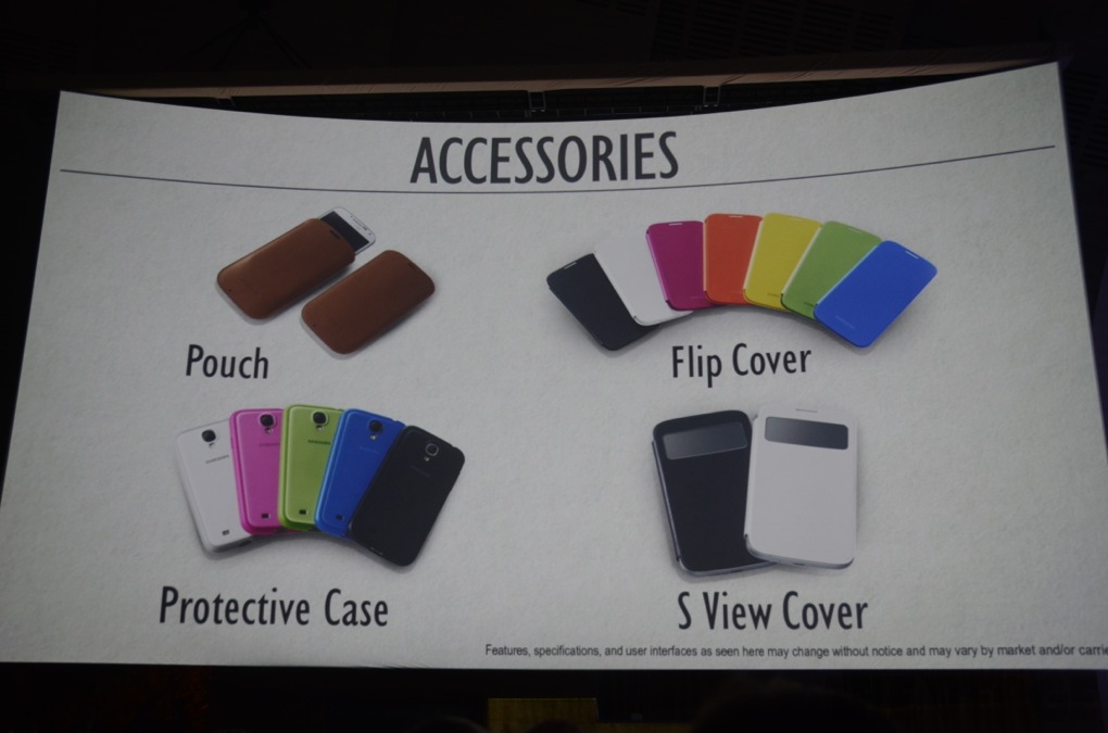 The variety of accessories and all of the various colors they come in was a big part of Samsung’s presentation and I couldn’t agree more with this. As a consumer, I am looking for high quality accessories made by the original manufacturer to go with my device. I don’t want to depend on a third party to create these accessories because I won’t know the exact quality although some are definitely better. Google needs to learn this lesson because its Nexus devices have been very popular this past year, but the lack of accessories coming to market with the device is just shameful. The Nexus 7’s dock only recently went on sale on Google’s Play Store, but the device has been out since July of last year. Samsung was smart to avoid this mistake by showing off the many accessories for the Galaxy S4 including pouches, flip covers, protective cases, and the new S View Cover that has a small display for easy access to important information.