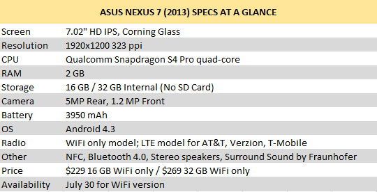 Usually after any Google Android event, I’d be gushing about the latest version of Android and all of the new features it will be bringing, but that was not the case today after Sundar Pichai, current head of Chrome and Android, took the stage today to announce a new Nexus 7 tablet and Jellybean 4.3. Jellybean 4.3 is a very minor update to Android, so the main star of the show was the new Nexus 7. It was about a year ago that Google entered the budget 7″ tablet space with its release of the original Nexus 7 and Jellybean 4.1. At the time, the original Nexus 7 was praised for its superb specs for the low price of $199 for a 8 GB version and $249 for a 16 GB version. The new Nexus 7 follows in the original’s footsteps with superb specs for a low price. Anyone in the market for a new 7″ tablet would be foolish not to consider the new Nexus 7.